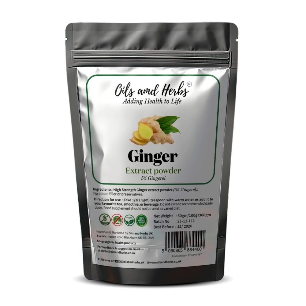 Our High Strength Ginger Extract Powder (5% Gingerol) is a premium herbal supplement crafted for those who want to naturally enhance their health and vitality. Perfect for teas, smoothies, or cooking, this finely ground powder delivers the powerful health benefits of ginger in its purest form. Sustainably sourced and rigorously tested, it is free from unnecessary additives – making it a safe and effective choice for your wellness routine.