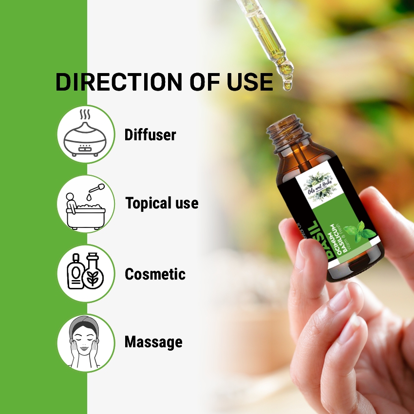- ❄️ Dandruff Relief – Massaging basil oil (diluted with coconut oil) reduces itching and strengthens roots.